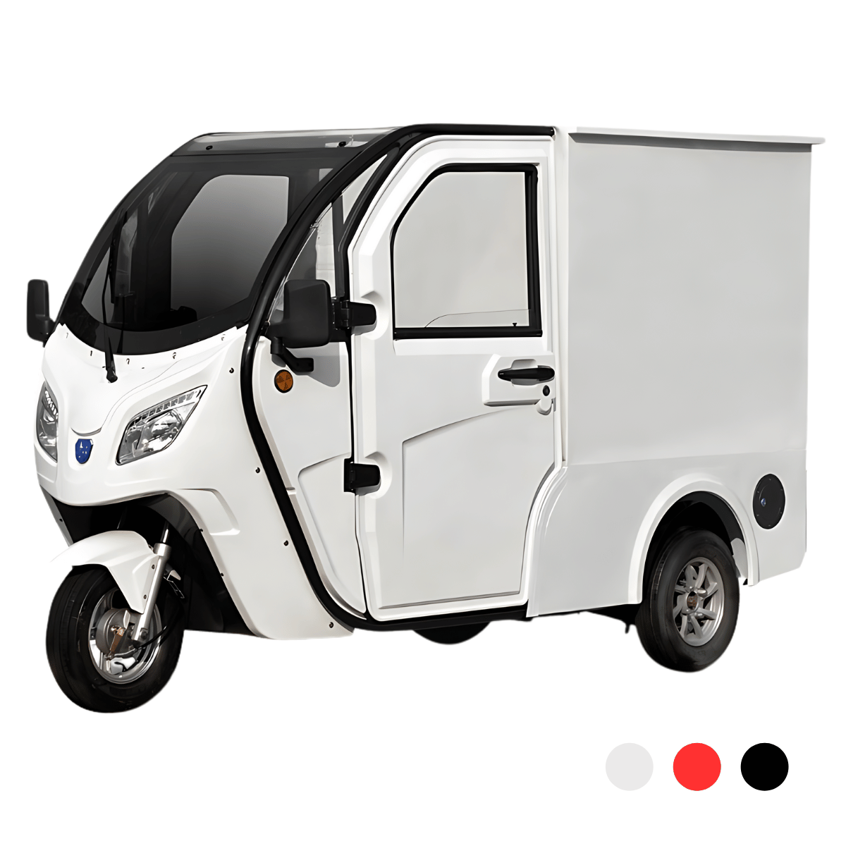 Der Jonway HSL Cargo ist ein robustes, vollelektrisches Lastendreirad mit geschlossener Transportbox, erhältlich in den Varianten 25 km/h (führerscheinfrei) und 45 km/h.