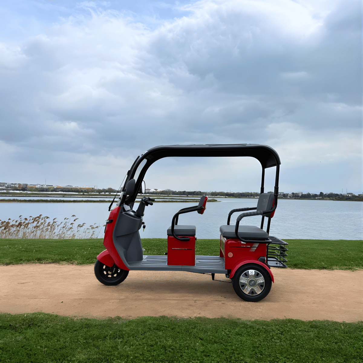 Der Volta VM5 NEO ist ein modernes, überdachtes elektrisches Dreirad zur Personenbeförderung für zwei Personen.